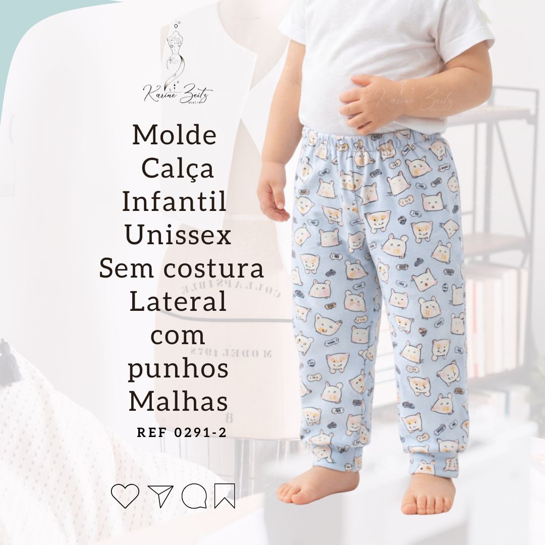 Molde Calça Malha Infantil Unissex com punhos sem costura lateral – Ref 0291-2